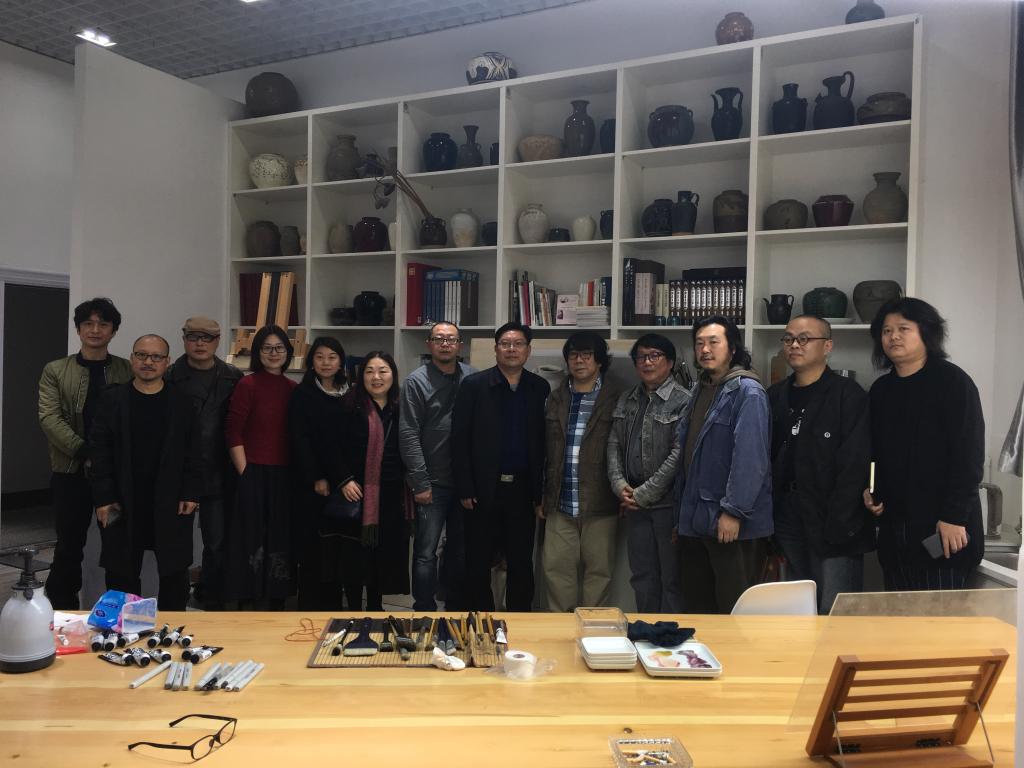 三峡大学艺术学院院长田强教授一行与我院领导教授代表在工作室合影