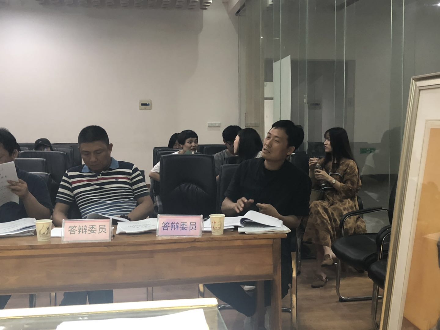 答辩过程中,老师们在学生陈述完之后,针对学生学位论文提出问题,学生先记录老师所提的问题,并在下一位同学陈述完之后再作答。