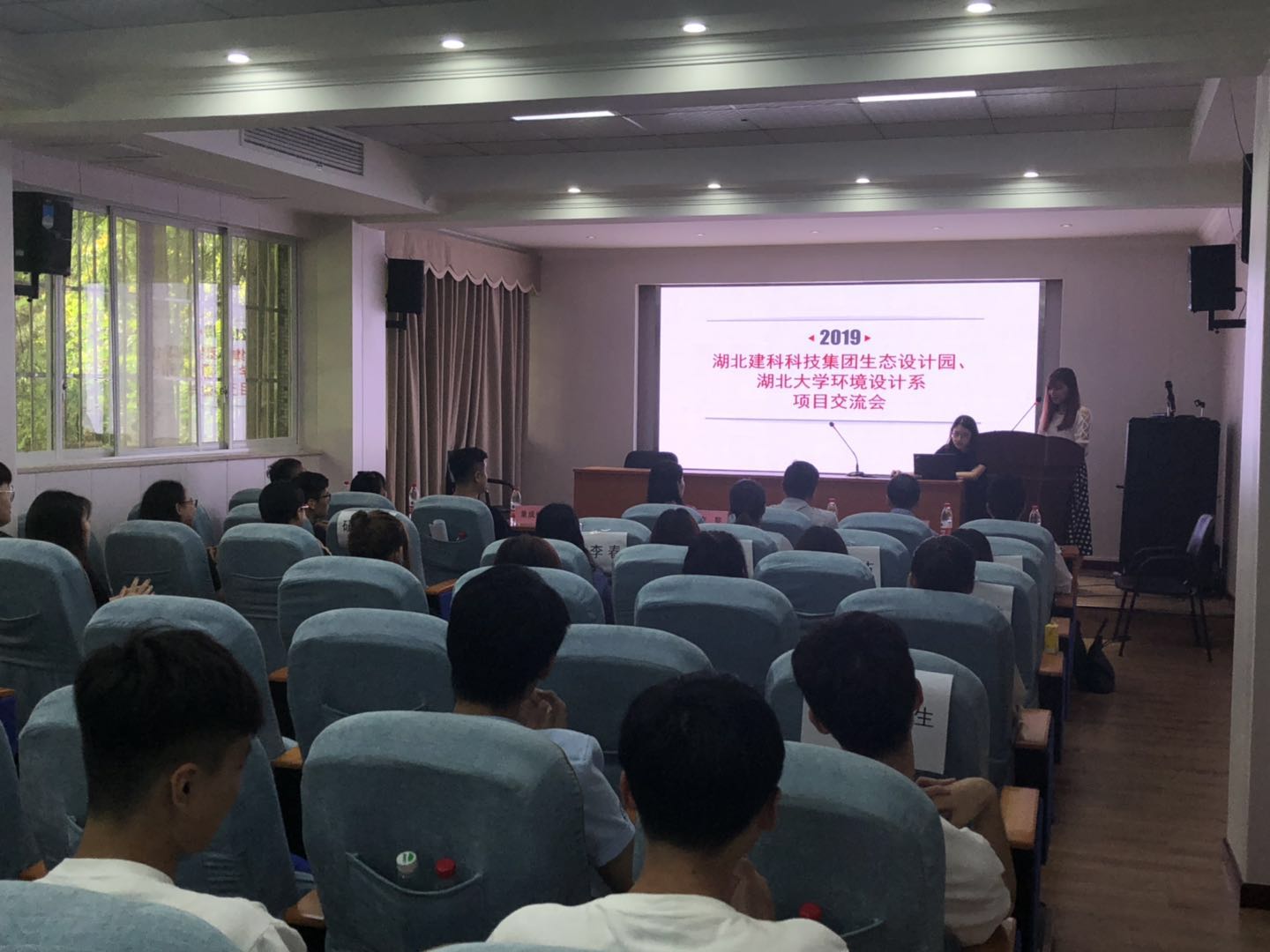 2019年7月3号上午,湖北建科集团黄健院长(生态公司总经理),景观方案所张海洋所长、设计师主任董成杭、设计师主任张苗、景观设计师廖雨豪、景观设计师黄岚、我院华勇副院长、环境艺术设计系主任章倩砺教授、张峰教授、周李春副教授、邹小飞教师、2018级研究生代表、2017级本科生代表、2018级本科生代表参加此次交流。交流会由18级研究生邓铃怡主持。