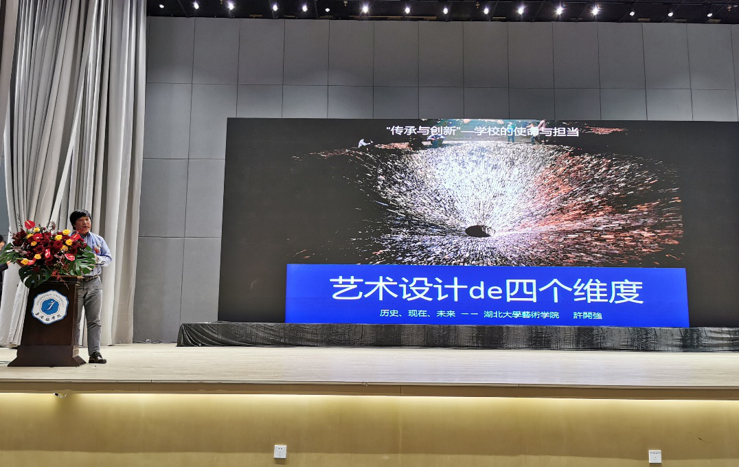 上午的会议中,艺术学院院长许开强教授作了题为“艺术设计的四个维度”的主旨发言,他指出,武汉市去年加入了世界创意之都网络,极大推动了湖北高校的艺术设计人才培养水平。但他认为,相对于具有一千多年深厚文化创意底蕴的景德镇市而言,湖北大学艺术学院还有很多需要讨教和学习的地方。因此,各高校之间应在艺术设计的广度、高度、厚度、温度这四个维度上全方位培养人才,开展深度融合与合作,为国育才,传承中华文明,加强国际交流合作,激起了主办方及参会嘉宾的共鸣和高度赞扬。