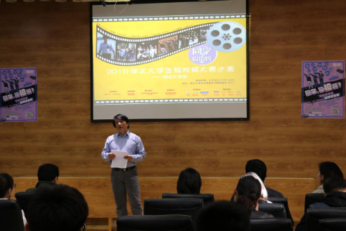 4月8日下午,走进湖北大学艺术学院就能看到“同学,你拍吗?”海报,上到二楼的多功能报告厅,里里外外都在为湖北大学生短视频大赛湖北大学站落地巡展而忙碌。湖北大学艺术学院院长许开强教授作为评委嘉宾致辞表示了对当今新媒体传播这种又新又快的方式的肯定并且鼓励同学们主导、演绎自己的生活,记录下生活中的挑战。莅临活动的嘉宾还有:湖北大学艺术学院党委欧明任副书记、艺术学院数字媒体系主任余日季副教授、湖北日报传媒集团大武汉新媒体公司总编辑张丽娜、大武汉新媒体公司副总经理王卓超以及湖北大学艺术学院学生会主席2015级数字媒体艺术专业孙枫同学。