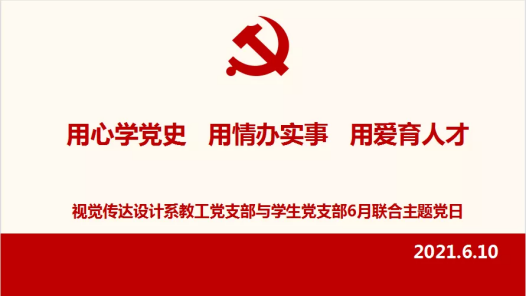 根据艺术学院党委6月党务工作安排和学院“我为群众办实事”实践活动的工作部署,6月10日下午,艺术学院视觉传达设计系教工党支部联合本专业研究生、本科生党支部举行了“用心学党史 用情办实事 用爱育人才”6月份主题党日活动,活动由支部组织委员王红主持,本系教工支部及研究生、本科生支部全体党员参加活动。