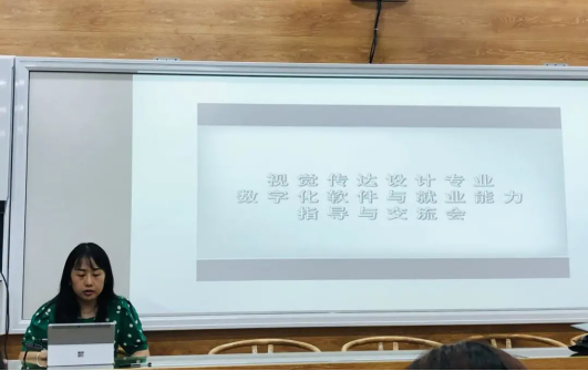 活动第三阶段,视觉传达系教工支部 “我为群众办实事”系列活动首场报告。教师党员余孟杰以“数字化软件学习和就业能力指导”为主题进行讲座与交流。她将数字化软件分为UI设计、平面设计、新媒体设计这三个方面,通过对不同软件功能的分析,比较分析软件的优缺点及软件间的交叉使用关系、软件适合使用人群,使学生党员对软件有了更深的认识,能更好地选择适用软件进行学习以提升就业能力。通过对武汉理工研究生毕业去向的数据展示,对近几年热门职业所需学习软件技能的种类与课程衔接等内容进行了较完整分析。并提出了解决学生对于本专业学习软件的困惑的方法,以及强调如何对就业渠道、工作经验等信息内容进行掌握技术层面的综合分析。