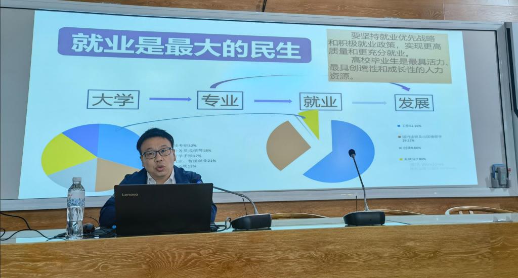 学校学工部副部长肖志华首先作了2022届毕业生就业指导专题辅导报告。肖处长在辅导报告中介绍了学生就业状况与学校、学院学科专业发展的密切关系,分析了2022届本科生就业工作基本情况及面临的形势,并结合艺术学院近几年就业数据提出推动毕业生就业创业的建议。他表示,要把就业作为学院学生发展的优先目标,强化“就业工作一把手”工程;汇聚整合学院资源,构建立体就业工作体系;推进就业工作综合考评。
