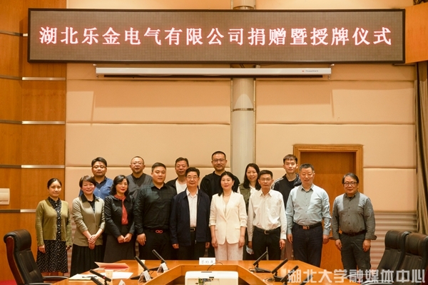 4月22日,湖北乐金电气有限公司捐赠暨授牌仪式在校举行,乐金电气捐赠160万元支持我院的建设发展。乐金电气董事长胡晓丽、副总经理张刘、技术总工顿华,湖北大学党委常委、副校长、教育发展基金会理事长钱建国,合作发展处、人文社会科学研究院、艺术学院负责人和师生代表参加活动。