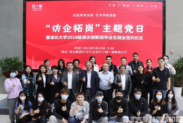 5月19日,我院2018级产品设计专业浪尖创新班毕业生就业签约仪式在浪尖集团D+M设计小镇举行,今年首届毕业班共有15名毕业生入职浪尖集团。校党委常委、纪委书记、监察专员檀坤华,浪尖集团董事长罗成、D+M小镇总经理李少康等出席活动。
