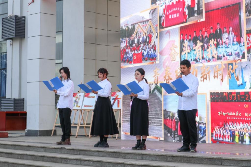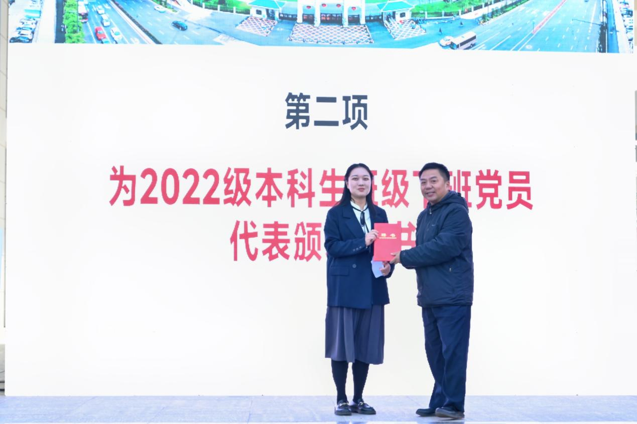 接着,2022级大一学生代表进行了“献礼二十大,笃艺新征程”的主题朗诵。在新生代表们高昂激越的朗诵生中,学子们饱满的精神风貌淋漓尽致地展现,青春的宣言在阳逻校区起飞翱翔。
