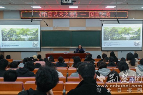 据了解,湖北大学积极探索通专融合,按照社会发展与公民教育、科学精神与科学技术、人文经典与人生修养、艺术鉴赏与审美人生四大模块,构建了通识教育课程体系。《中国艺术之美》作为艺术鉴赏与审美人生模块中的一门课程,以国画、书法、戏剧、文学、影视等8种艺术形式的基础知识为主要内容,邀请8位名家来院授课。该课程立足文化自信立场,秉持通识教育理念,讲述中华历史之路上更多文化瑰宝,有利于培养大学生的审美鉴赏能力,对于塑造大学生正确的人生观、价值观能够发挥重要作用。