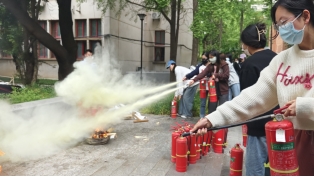 教官演练完毕后,同学们开始自行尝试着使用消防器材,熟悉使用方式,为日后遇到火灾时的临危不乱打好基础。现场提供了充足消防器材供学生使用,大家井然有序依次进行演练。至此,活动于大家的实操中圆满结束。
