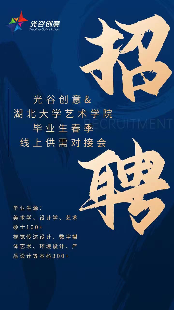 为深入做好访企拓岗,为毕业生联系有人才需求的相关企业,同时助力光谷创意产业基地入驻企业的人才引进,我院联合中国光谷创意产业基地共同举办“光谷创意&湖北大学艺术学院毕业生春季线上供需对接会”。