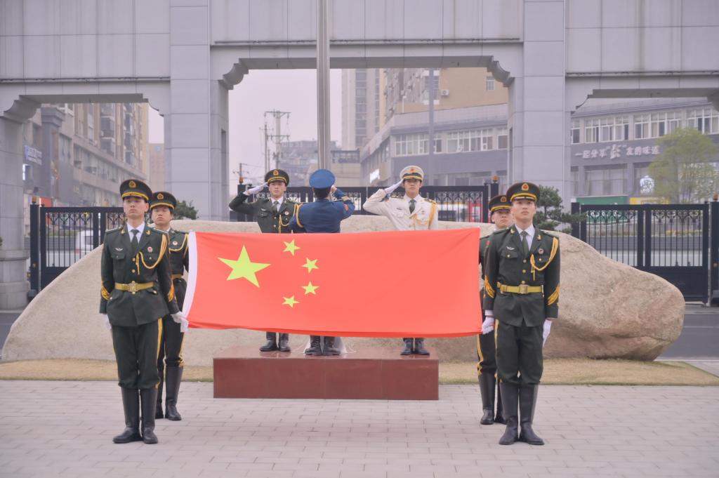晨曦初露,国旗护卫队迈着铿锵步伐护卫国旗入场。7时整,在庄严的国歌声中,五星红旗冉冉升起,全场师生庄严肃立向国旗行注目礼,以昂扬的精神面貌,共同迎接新一周的到来。