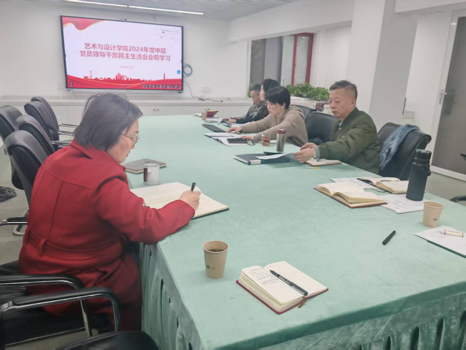 2025年2月24日下午,艺术与设计学院开展2024年度中层党员领导干部民主生活会会前重点学习内容集中学习暨党委2月份理论学习中心组集中研学会,学院领导班子全体成员参加学习。会议由学院党委书记叶秀娟主持。