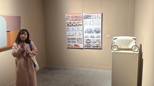 参展艺术家代表也纷纷走上前,分享各自作品背后的故事与创作心得。学院美术系与基础课部教工党支部书记李碧红分享了创作时如何大胆尝试、突破传统,通过独特视角和创新手法,融合多元艺术元素,传达作品深层内涵,鼓励党员将活动所学所感转化为工作动力,在艺术创作与教育中发挥先锋模范作用。环境艺术设计系教工党支部书记章倩砺讲述设计作品的构思萌芽,分享最终呈现出兼具实用性与审美价值的成果的设计历程。