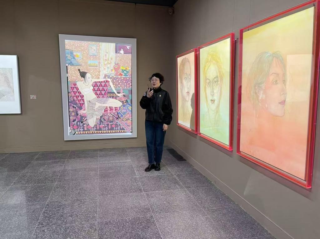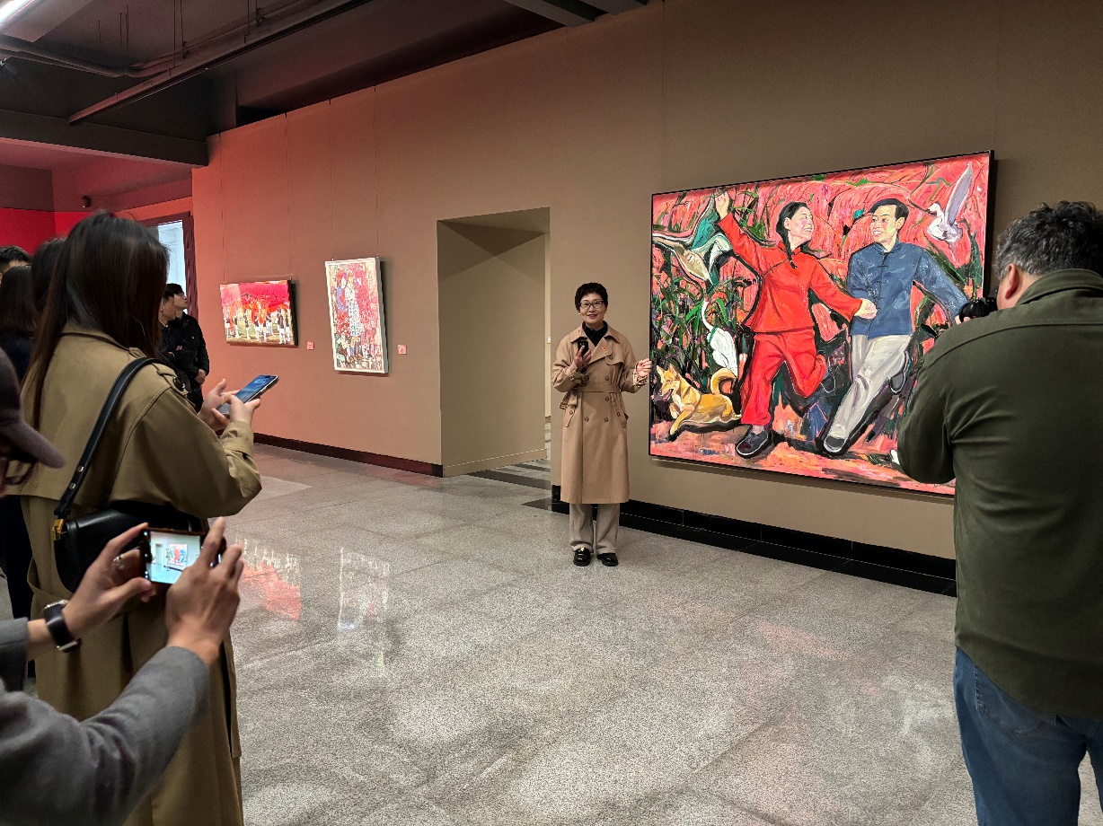在实地互动党课环节,湖北省美术院党委委员、副院长谢晓红以“行走的党课”形式作现场导览,详细解读湖北女性艺术家群体在党的文艺方针的指引下,牢记新时代所赋予女性的历史使命,不断深入广阔的时代现场和艺术现场,以生动的艺术实践和卓越的艺术创造,为当代湖北美术生态带来的全新艺术视野和多元表达,并深入介绍了湖北女性艺术家在挖掘、展示和弘扬荆楚文化方面作出的突出贡献。