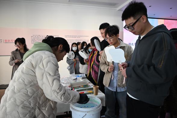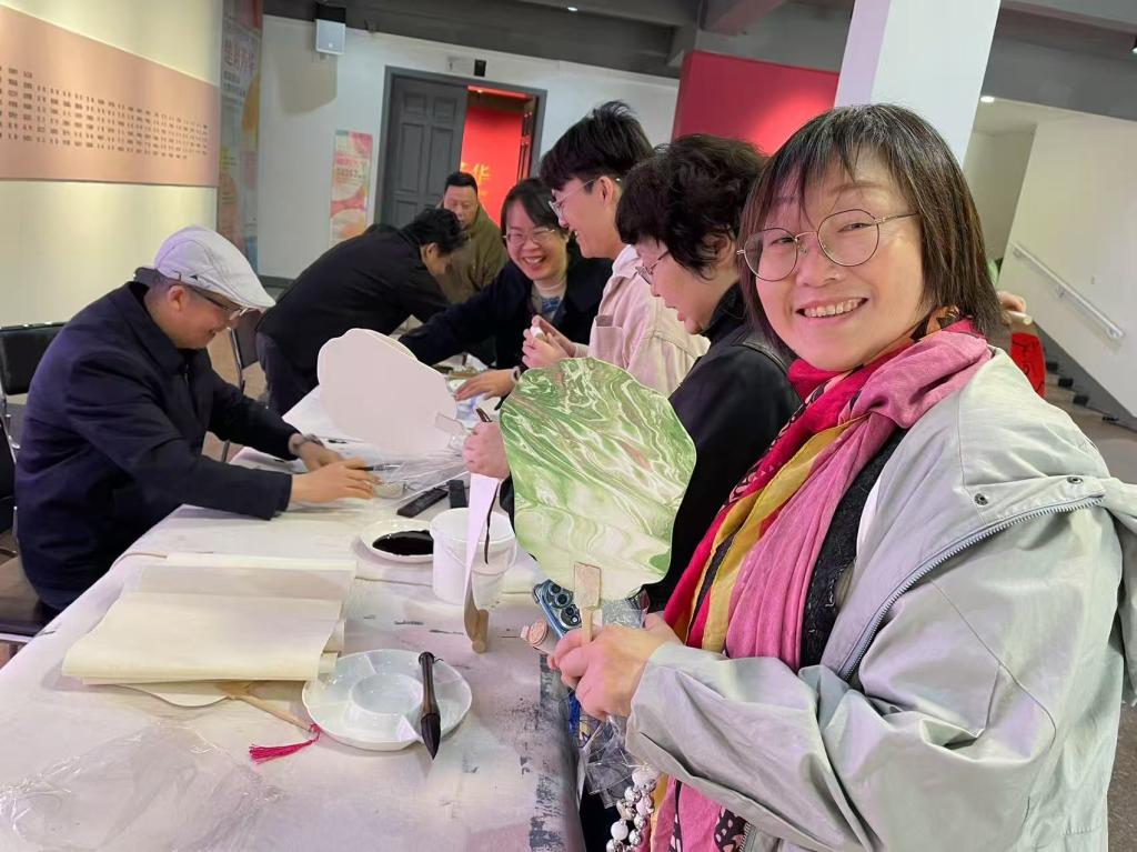 随后,同志们积极参与了现场艺术创作体验活动。版画拓印、漆扇制作、书法展示、绘画创作……大家以党建元素和荆楚文化为灵感,将学习的感悟和对未来的美好期许化墨为字、落笔成花,共绘两院合作共建新画卷。