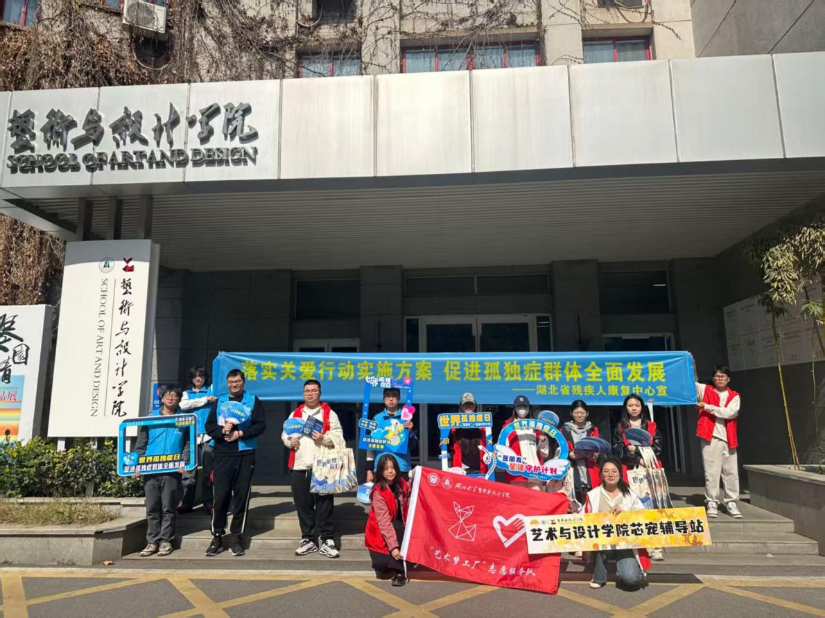 2025年3月21日,艺术与设计学院“艺术梦工厂”志愿服务队,在青年志愿者行动指导中心的指导下,和院芯宠辅导站携手湖北省残疾人康复中心孤独症智障康复部单位,积极响应第18个“世界孤独症关注日”的号召,联合举办了“蓝朋友,星途守护计划”孤独症日主题活动。此次活动旨在深入唤起社会对孤独症群体的广泛关注,通过科普宣传、互动体验等多种形式,向大众全面介绍孤独症的相关知识及其重要性,传递社会温暖与善意,并呼吁全社会共同关注和支持孤独症群体,如同守护“星星的孩子”一般,携手营造一个充满包容、接纳与关爱的社会氛围。