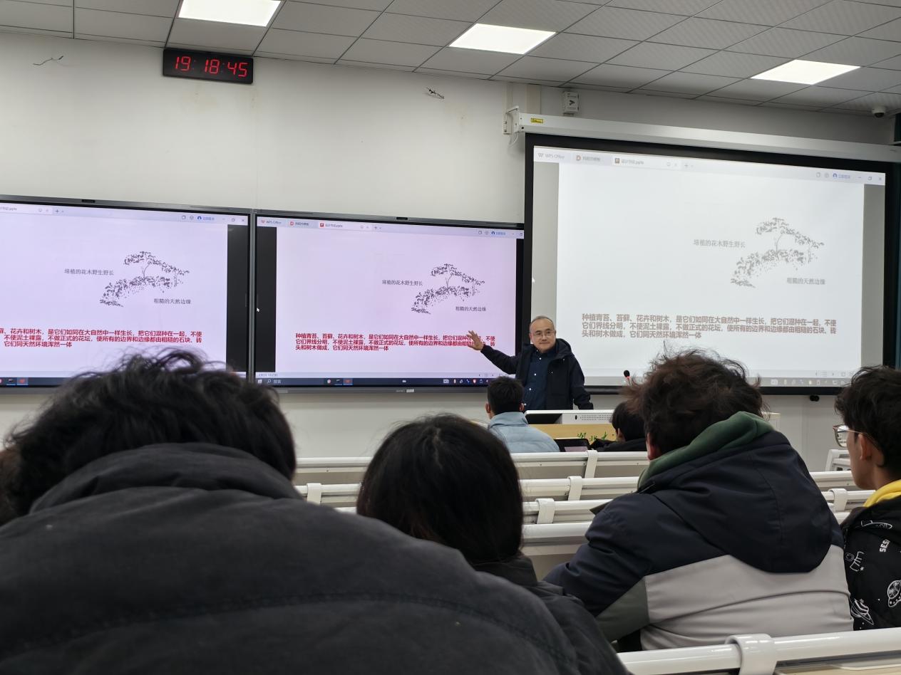 讲座以图文结合的方法向学生讲述生活中的设计巧思,从花园到儿童游乐场、从庭院到游廊、从台阶到花台......无处不在的生活智慧时刻启发着我们,只是我们缺少发现的眼睛。“设计不应过分关注形式,而应重视其功能意义”龙元教授强调。设计是为人服务,要以人为本,形式主义只会束缚创造力,造成资源浪费,甚至违背设计的初衷。