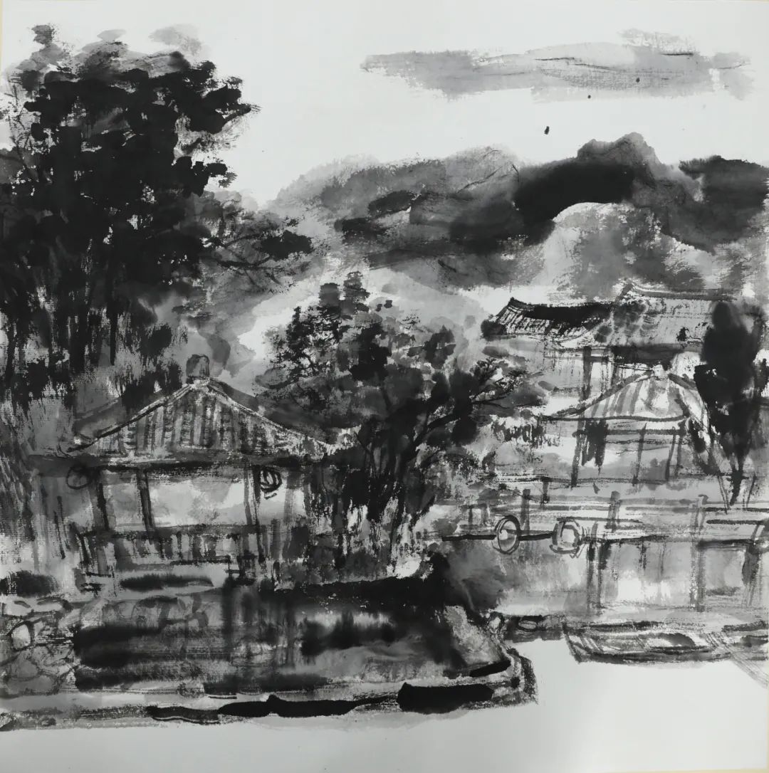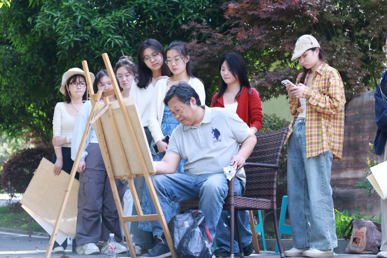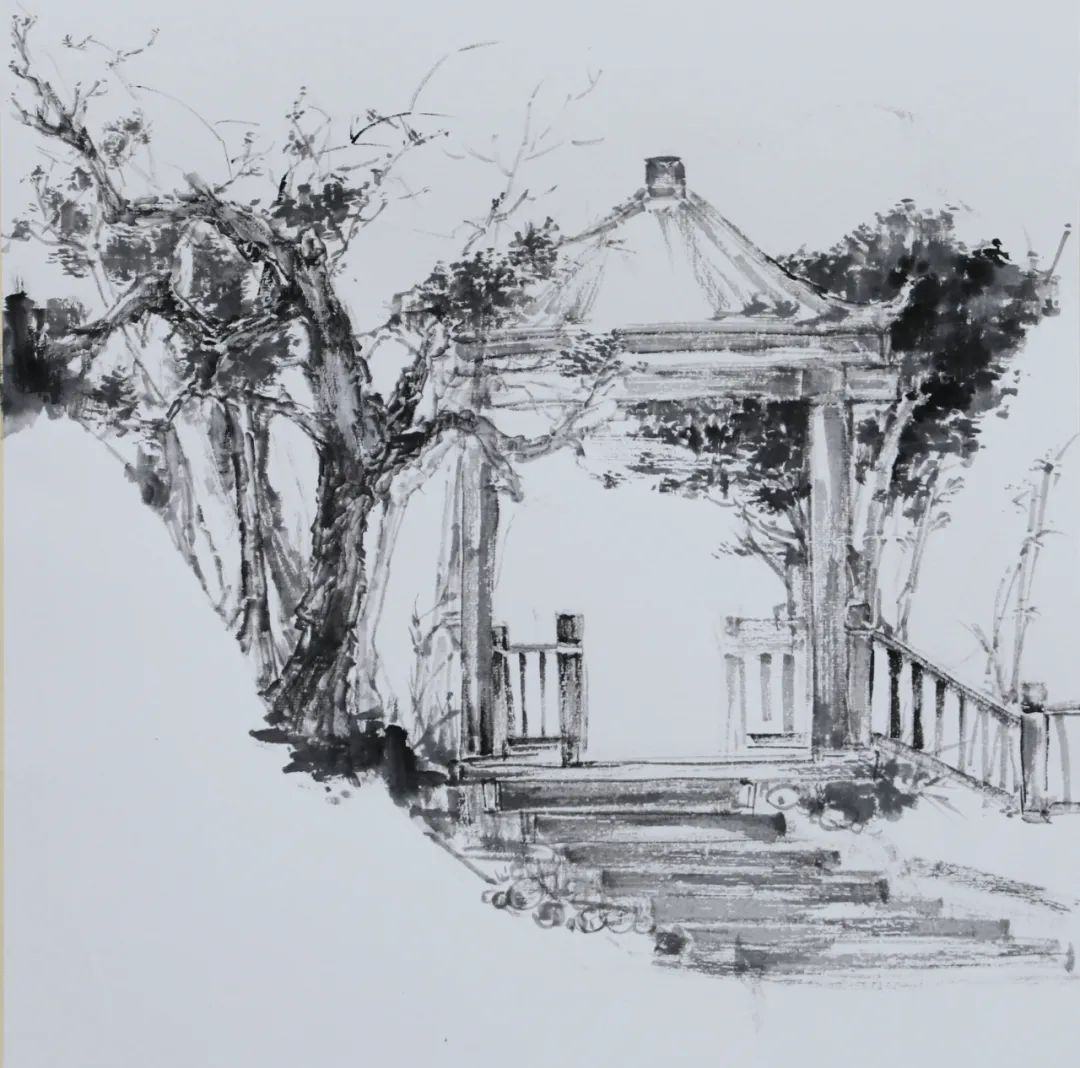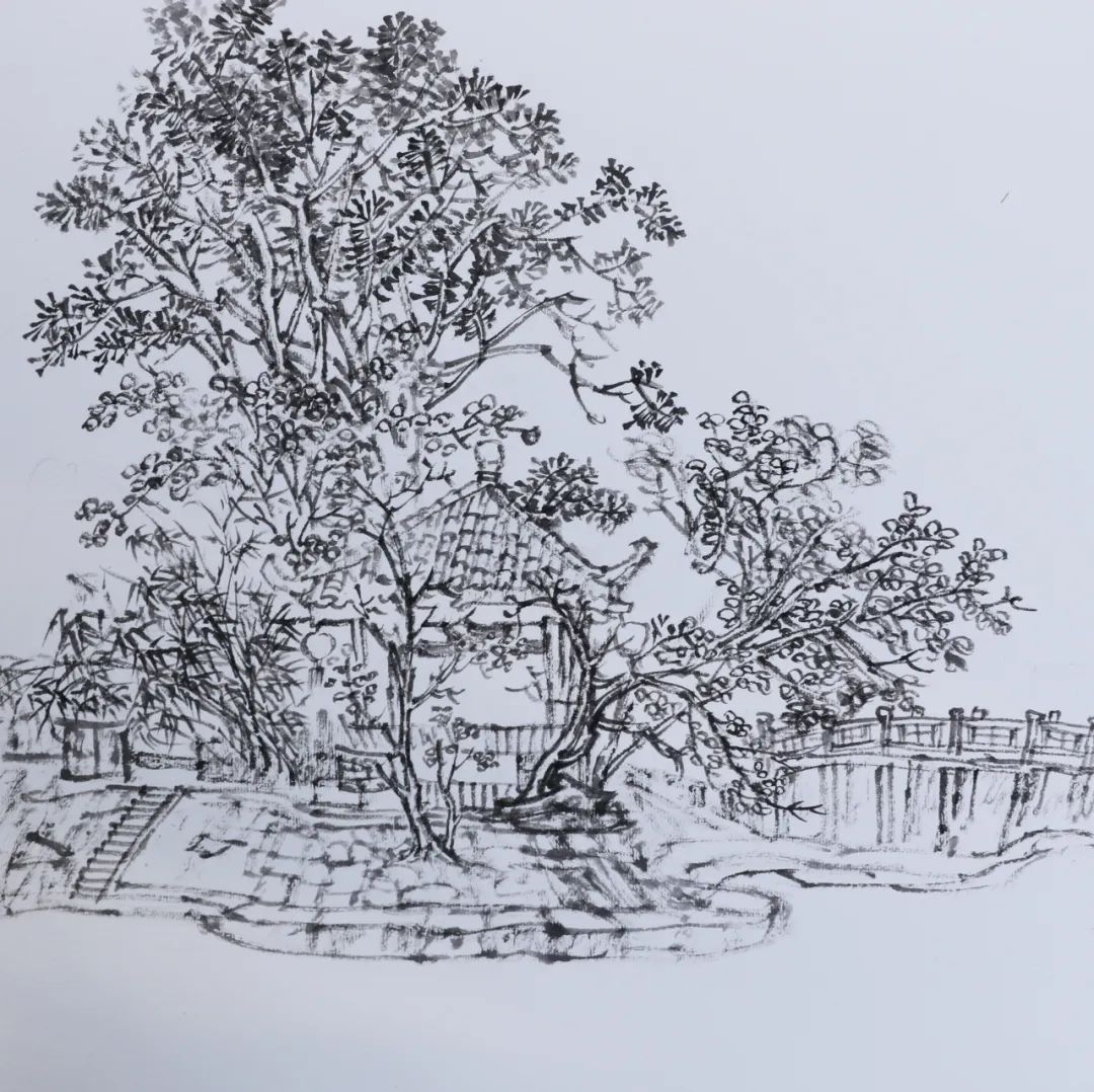 下午,在董老师工作室观摩学习之后,一场以水墨为媒、以自然为师的写生活动在美术馆徐徐展开。