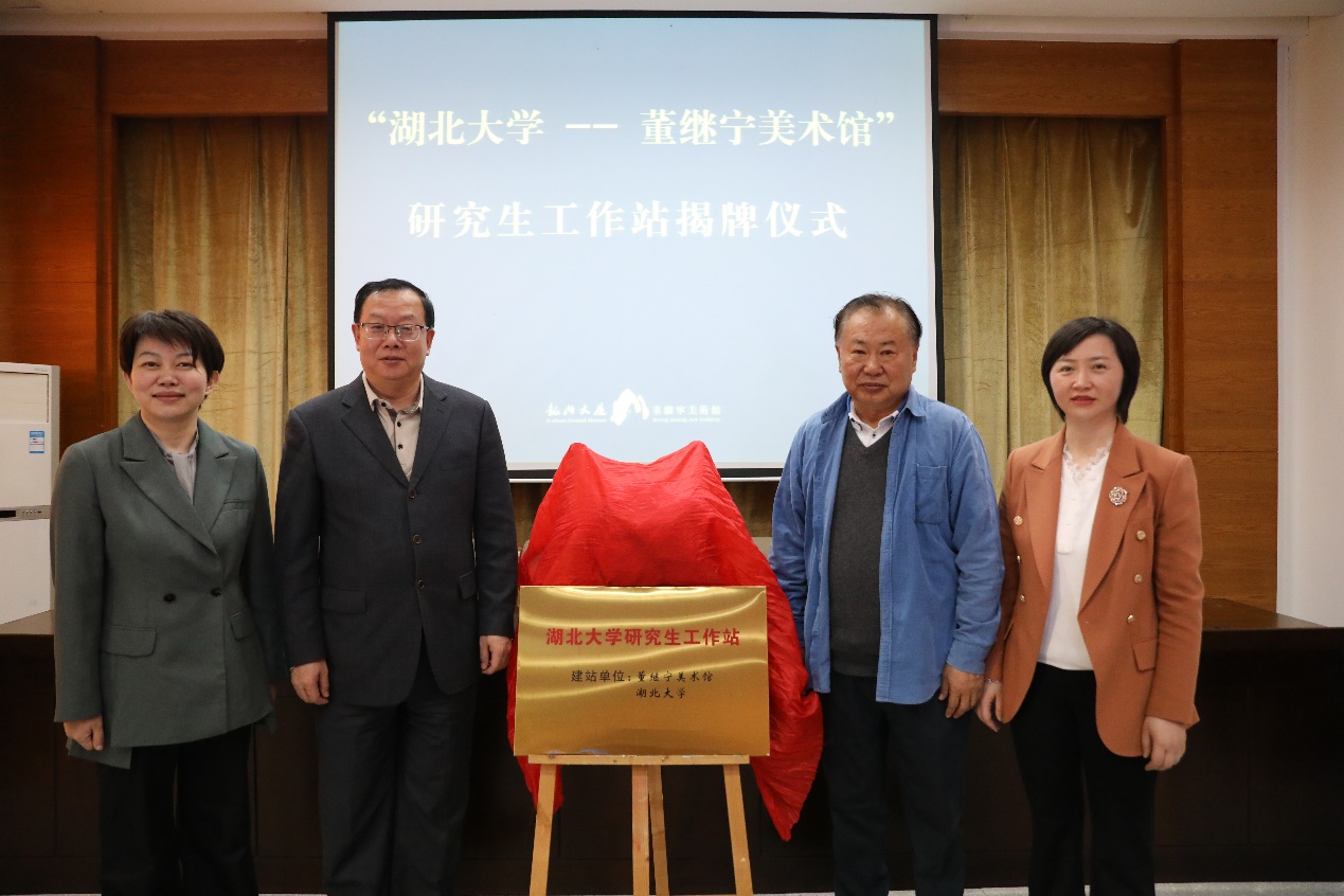 湖北大学艺术与设计学院名誉院长董继宁,湖北大学研究生院院长王贤保、艺术与设计学院党委书记叶秀娟,咸安区委常委、宣传部部长丁玲共同为“湖北大学——董继宁美术馆”研究生工作站揭牌。咸安区委宣传部副部长、文联主席胡剑芳,湖北大学艺术与设计学院副院长潘锋,“湖北大学——董继宁美术馆”研究生工作站负责人谭崇正,董继宁美术馆馆长郑文婷,研究生工作站入站老师邓鸿涛、张立、王文印出席揭牌仪式。湖北大学中国画方向全体研究生、美术馆全体成员共同见证这一具有里程碑的重要时刻。