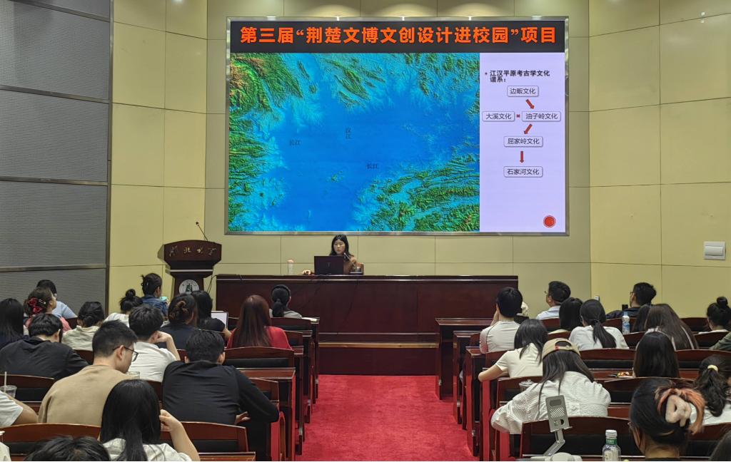 郭店楚简研究中心主任范晓佩以"荆楚文化内涵及荆门市博物馆馆藏文物概述"为题讲座,为师生带来一场文化盛宴。从边畈文化肇始到石家河文明演进,从楚式铜镜的纹饰密码到漆木女俑的工艺美学,通过城河遗址沙盘演示、郭店楚简数字化展示等多元形式,系统梳理了荆楚文化七千年传承脉络。重点解读馆藏珍品中蕴含的设计智慧:谷纹玉器的礼制象征、凤鸟纹漆盒的审美范式,为文创设计提供了丰富的灵感源泉,讲座由产品设计系王红教授主持。