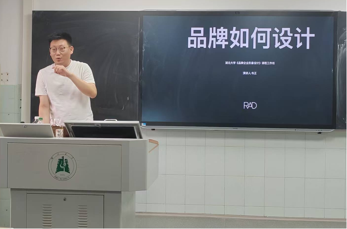 为深化产教融合、提升设计类专业人才培养质量,艺术与设计学院视觉传达设计系于2025年5月9日至5月10日特邀国内知名品牌设计机构"武汉热爱度(RAD)品牌创意有限公司”创始人、首席设计总监韦正及设计团队,成功举办为期两天的《品牌企业形象设计》专题工作坊。本次活动吸引了视觉传达设计专业师生共计50余人参与,通过理论精讲、案例剖析与实战演练相结合的模式,助力师生掌握品牌形象设计的全流程思维与创新方法。