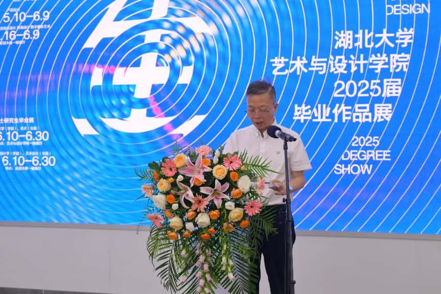 5月13日,湖北大学艺术与设计学院2025届美术学专业本科毕业作品展开幕。本次展览以“生”为核心意象,寓意毕业生如“初生牛犊”般充满创造力,亦象征艺术精神的“生生不息”。开幕式由美术2102班段诗锐主持,学院领导及教师出席开幕式,美术学本科生导师代表、学生代表、全体美术学毕业生等参加开幕式。