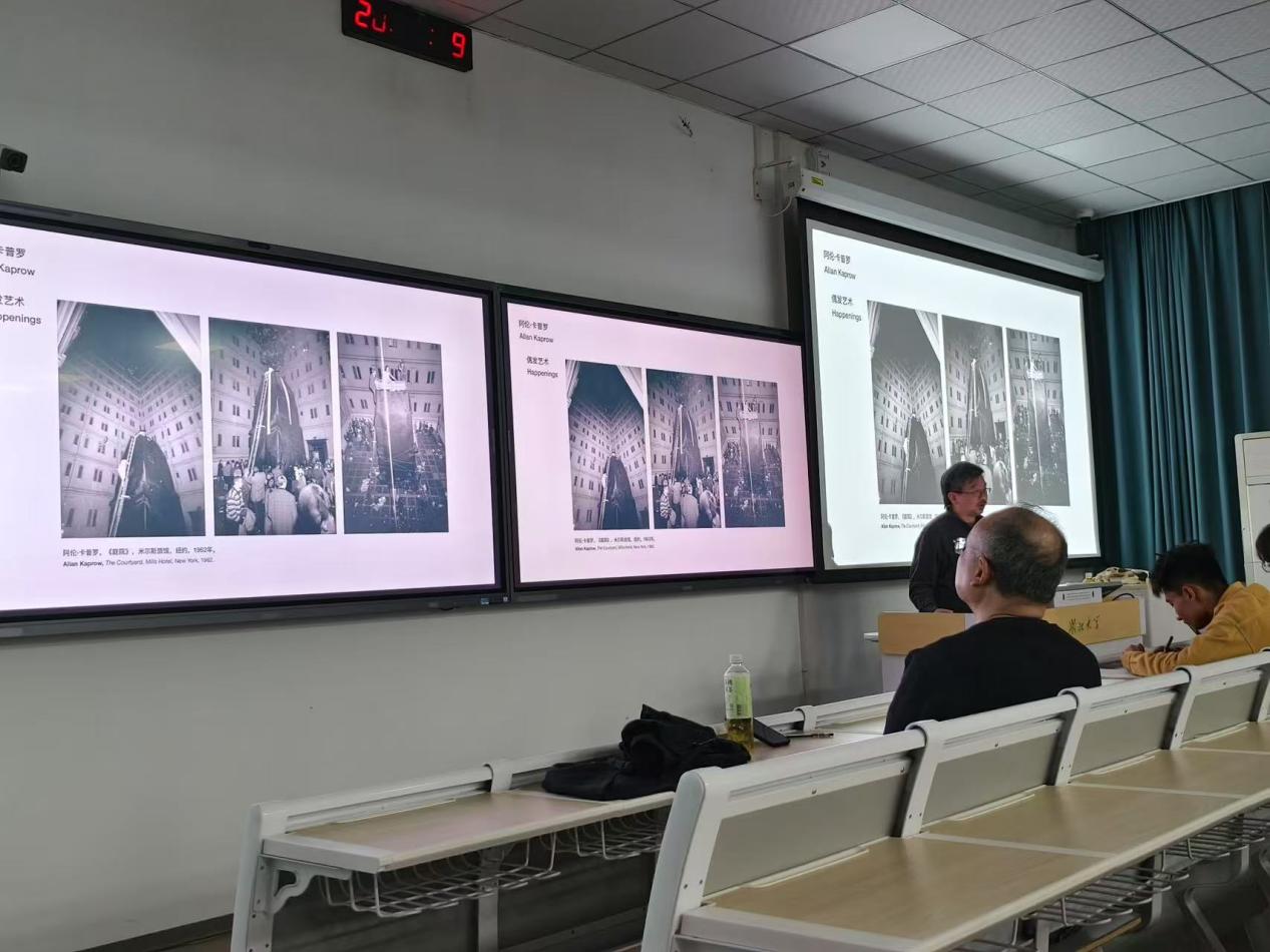 通过丰富的图像资料,李教授向学生展示了艺术介入城市空间的多元形态。他指出,随着艺术不断深入城市空间,不仅创造了新颖的审美体验,更通过个性化的艺术表达满足了公众的精神需求,还能反映社会文化的变迁。无论是视觉标语艺术、街头行为艺术、还是其他即兴艺术形式,都承载着丰富的情感内涵和精神追求。