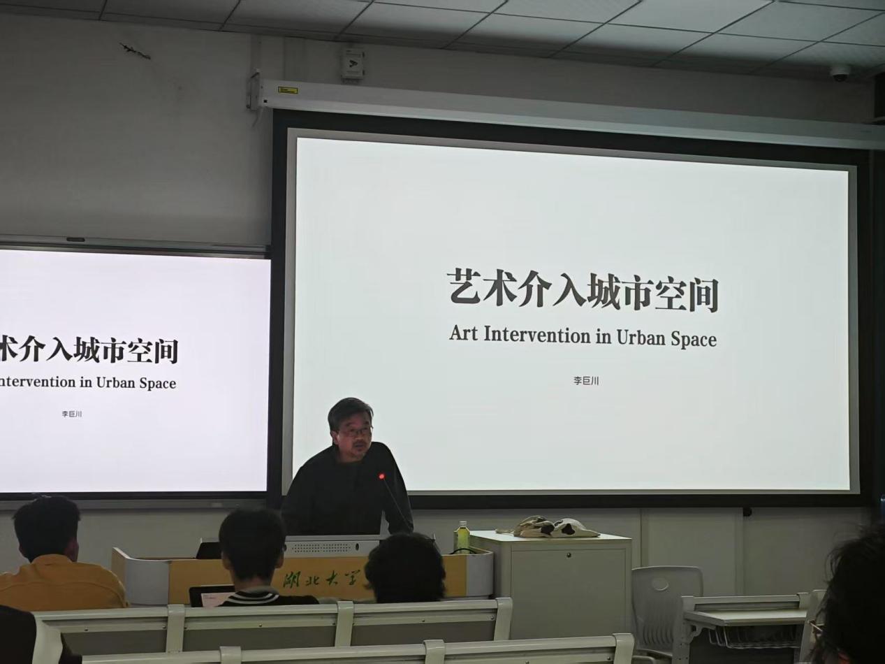 4月2日晚,学院特邀湖北美术学院李巨川教授莅临阳逻校区,以"艺术介入城市空间"为主题,为学生们呈现了一场精彩的学术讲座。我院龙元教授担任主持,近两百名学生到场聆听。