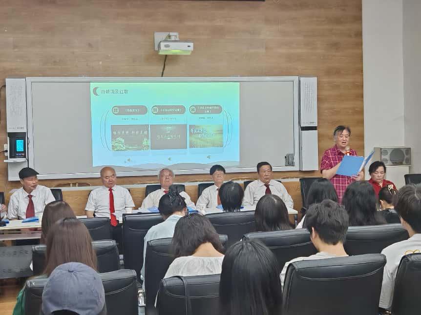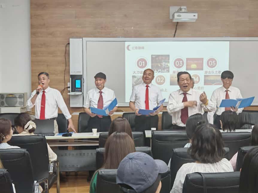 传承红色基因,淬炼党性修养。5月13日晚6时,学院入党积极分子及发展对象培训班开展音乐党课教学,校关工委“老教授红旗说唱团”以“纪念抗战胜利·红歌吟颂传承”为主题,通过经典红歌演绎与党史讲解相结合的方式,带领青年学子重温峥嵘岁月。