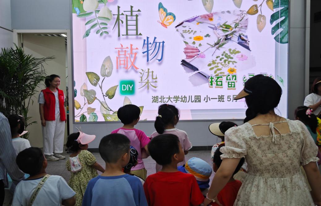 2025年5月20日上午,湖北大学艺术与设计学院内回荡着孩子们清脆的笑声——由艺术与设计学院青年志愿者行动指导中心的艺术梦工厂策划的“童绘自然·美育启蒙”志愿活动正式拉开帷幕。近80名湖北大学幼儿园的小朋友在孔德巍老师与志愿者的引导下,沉浸式地参观了毕业画展,并通过“树叶拓印小课堂”学习了利用自然元素进行创作的新方法,在艺术与自然的交融中开启了一场独特的美育之旅。
