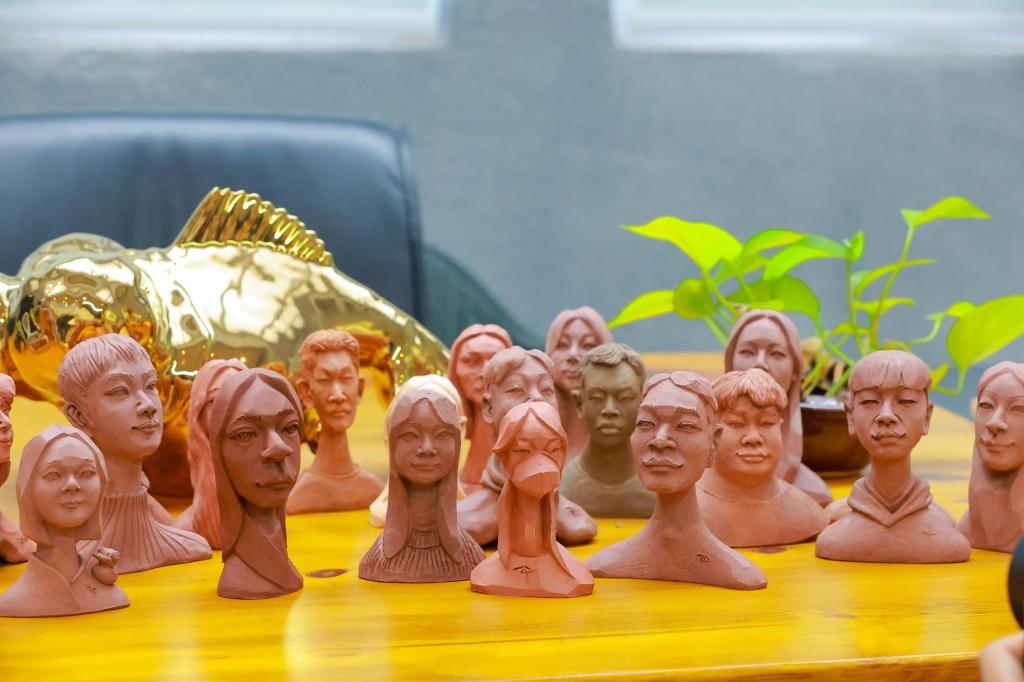 观察头像,会发现每个都有巧思。爱听音乐的学生脖子上戴着耳机,最强壮的学生的神态上融入了兵马俑的坚毅,爱戴帽子的学生头顶有小小的帽子……泥塑上每一处纹理、动态及装饰的设计,都让学生惊叹:“尤老师比我们自己更懂那些小习惯!”
