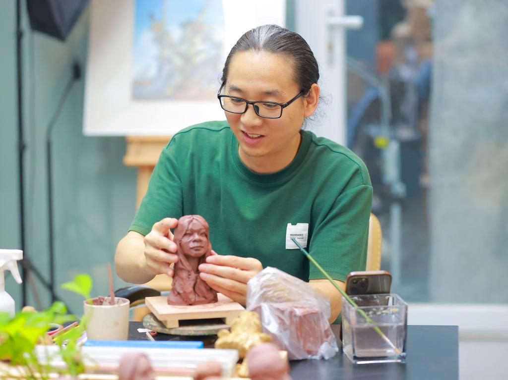 头扎小辫儿,面带微笑,胸前有猫猫头,这是湖北大学产品设计专业毕业生徐轲收到的一份特殊的毕业礼物——一个属于自己的泥塑头像,“和我本人好像,特别是嘴唇的弧度,太逼真了。”徐轲说。