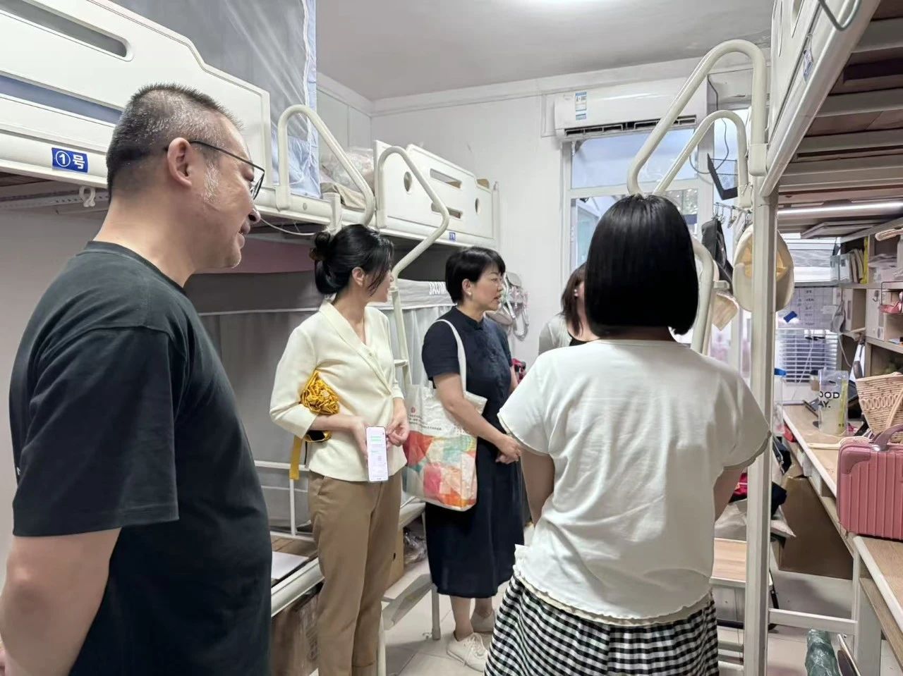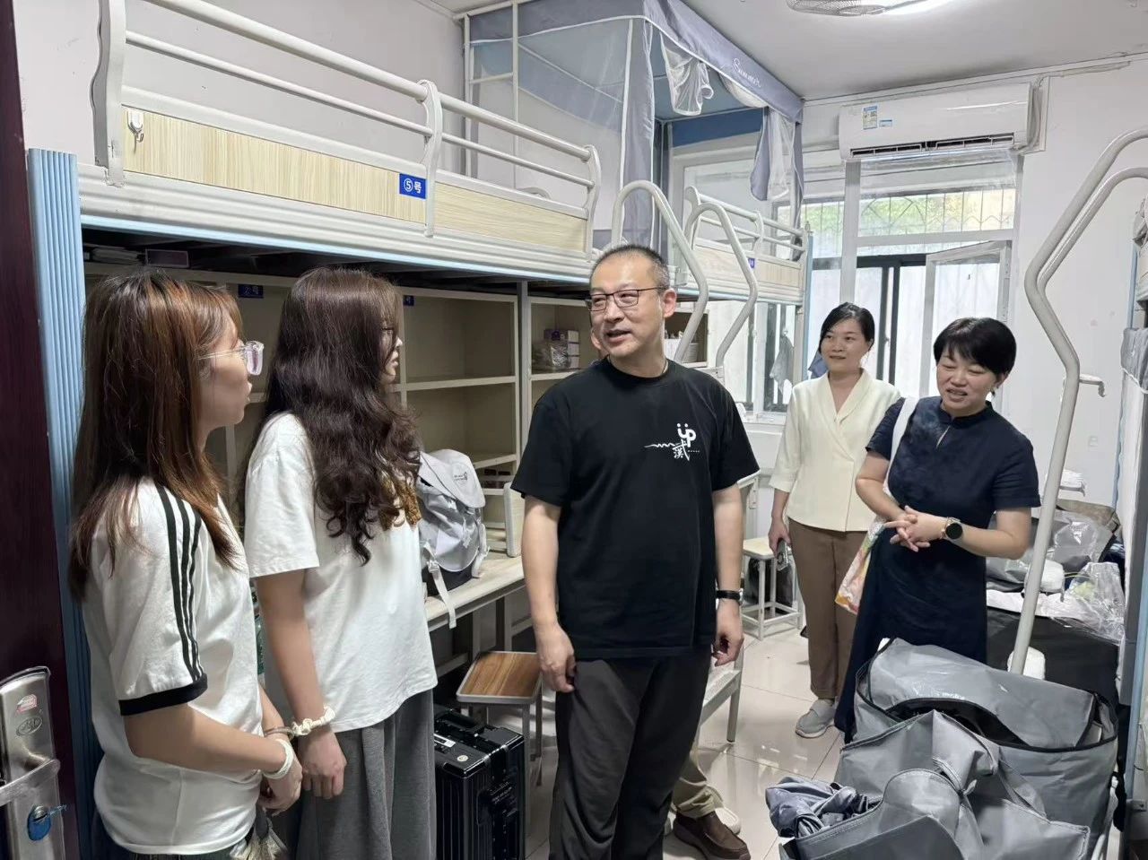 学院领导深入走访学生宿舍各楼层,亲切与同学交流,关切询问生活需求,并鼓励同学们暑期积极参与实习实践,注意人身安全。