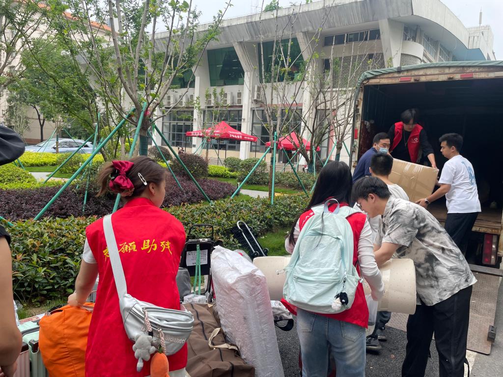 搬迁现场,学院师生志愿者们分工明确,通力协作,全程提供暖心支持。在整个搬迁过程中,志愿者们积极配合,展现出良好的团队协作精神和纪律性。尽管天气闷热,行李搬运任务繁重,但同学们相互帮助、相互支持,使得搬迁工作得以高效进行。