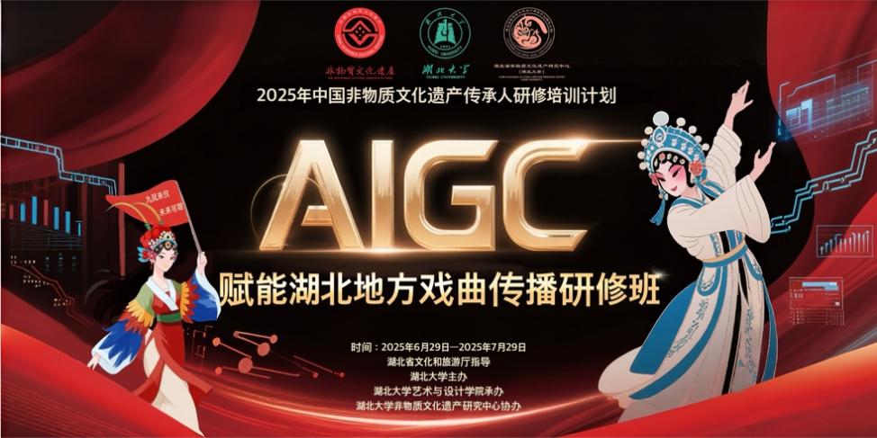 6月30日上午,中国非物质文化遗产传承人研修培训计划——“2025AIGC赋能湖北地方戏曲传播研修班”开班仪式在我院举行。湖北省文化和旅游厅非遗处副处长胡双喜,武汉大学教授郑传寅,国家一级编剧胡应明,学校人文社会科学研究院、资产管理公司、文化遗产学院、艺术与设计学院负责人,以及本次项目授课教师和全体学员参与了此次开班典礼。本次开班典礼由学院副院长尹朝阳主持。