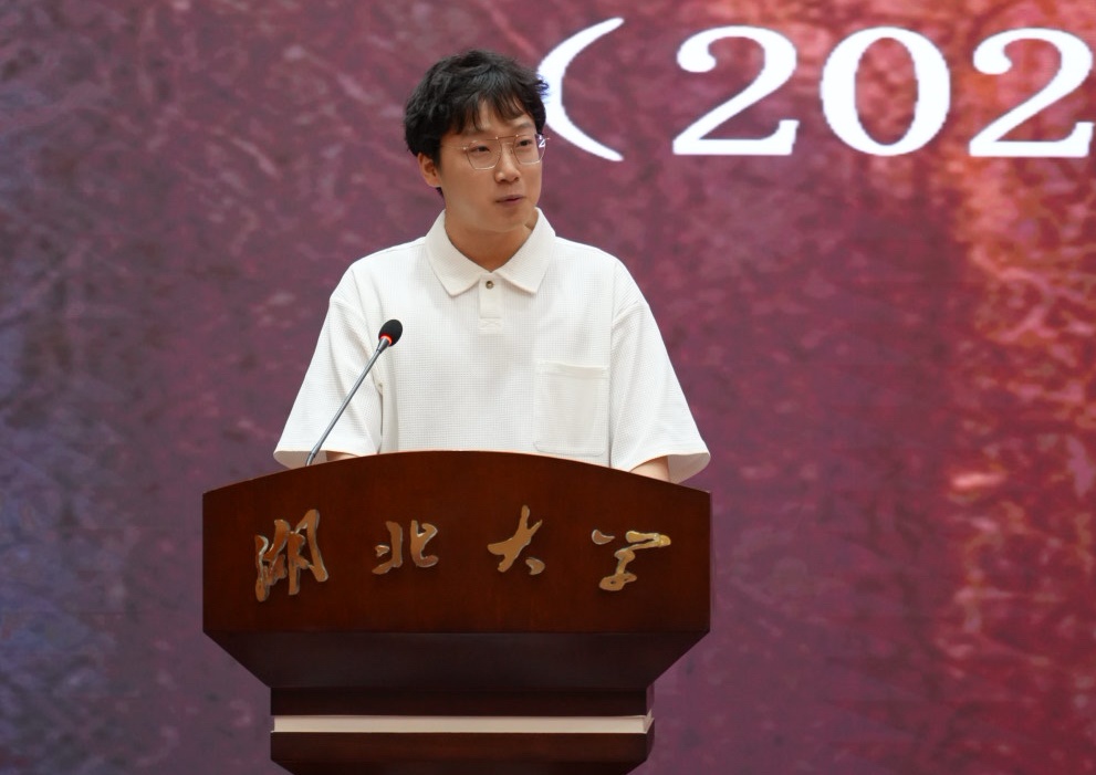 2023级环境设计专业王鲁阳作为老生代表发言,为新生送上三句寄语:一是愿大家“学所未学”,不断拓展知识边界;二是愿大家“知所未知”,深入探索专业背后的逻辑与力量;三是愿大家“见所未见”,以开阔视野认知更广阔的世界。他鼓励同学们坚定理想、勇于担当、不畏艰苦、持续奋斗,在充实的研究生生涯中,找到学习、生活与未来职业发展的“最大公约数”。