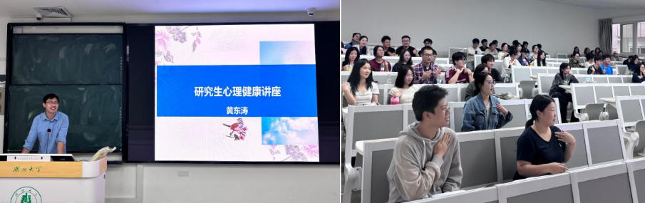 为提升学生心理健康意识,帮助新生应对学业与科研中的压力,9月19日,学院举办了研究生 “自我压力调适”的心理讲座,由黄东涛老师主讲。