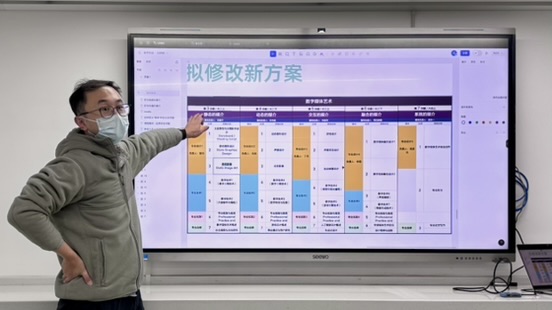 汤孟元首先介绍了本专业教学改革课程模块设置架构及课程间的逻辑关系,着重阐明了新方案源于教师团队的深度研判,而非简单调整。课程团队通过反复探讨专业概念的核心与边界后认为,课程改革应当以数字媒体艺术的专业定义为核心,重视“作为传播的媒介”和“作为物质的媒介”等多个维度,这样才能确保新课程体系的科学性和前瞻性。而新课程体系设计的基本构架则应以“媒介”为线索,构建从“静态”的媒介(第3学期)到“动态”的媒介(第4学期)、再到“交互”的媒介(第5学期)和“融合”的媒介(第6学期)的递进式、系统化教学路径。本专业第3学期模块化教学,重在培养学生综合运用视觉叙事、图像设计和影像采集技术的能力,形成一个连贯的视觉创作链路。接着,青年骨干教师伞天成、郑嘉宁、向垚先后结合自身所带课程内、课程间的现状问题,如系统连贯性、目标明确性等都亟待加强,以点带面向学院简要介绍了课改思路与实施办法。