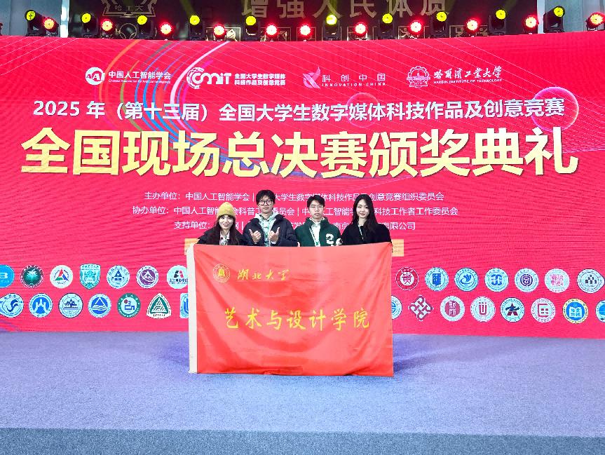 2025年10月25日至26日,第十三届全国大学生数字媒体科技作品及创意竞赛全国现场总决赛在冰城哈尔滨圆满落幕。湖北大学艺术与设计学院选派的两支研究生团队,在叶云、周爽老师团队和吴义曲老师团队的共同指导下,凭借出色的创新设计与扎实的科研功底,从全国众多优秀作品中脱颖而出,其参赛作品《土脉社会针灸:继昌SDGs拓扑益空间计划》与《茶语织山水——游观动线的人居园林重构》双双荣获全国一等奖,成为湖北赛区“人居环境设计”赛道中唯二的一等奖获奖作品。