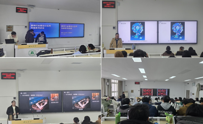 11月26日-12月8日,湖北大学艺术与设计学院特邀游戏行业的多位专家陆续进校为研究生《设计理论前沿与创新应用》课程进行游戏专题的系列讲座。渡漠游戏科技制作人郭妙言、技术负责人刘源峰、游戏配乐负责人郑少泽,金山武汉集团孵化中心策划负责人,独立游戏创意总监刘亮,铃创科技QA部门负责人张家豪及先生走进课堂,为设计专业研究生开展游戏设计专题系列教学。多位专家先后分别从行业技术实践、游戏设计方法论、游戏主机历史、游戏黑盒Q&A等维度展开系统讲授,为学生构建全面感知游戏产业的全景框架。