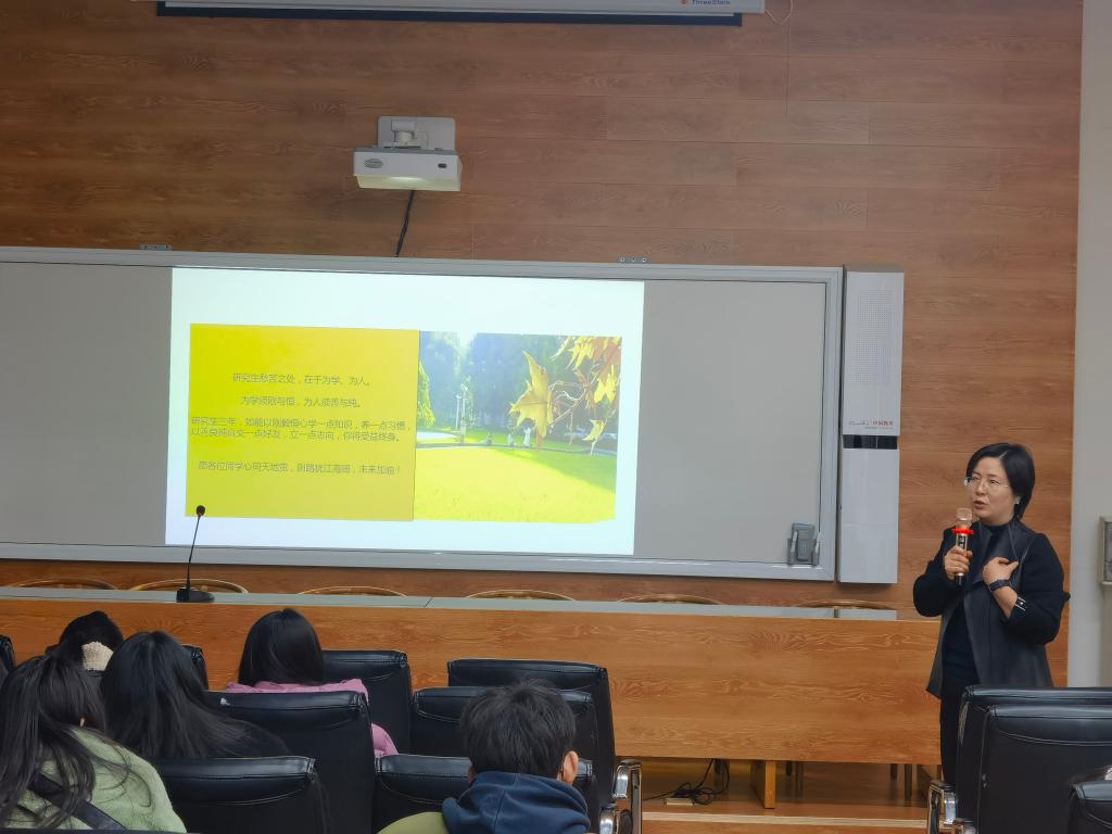 胡老师从研究生教育的发展、现状以及未来趋势等方面进行了全面的分析和阐述。她指出:随着科技的快速发展和社会的不断进步,研究生教育的任务和目标也在不断变化,鼓励学生们要有广阔的视野,积极面对未来的挑战。