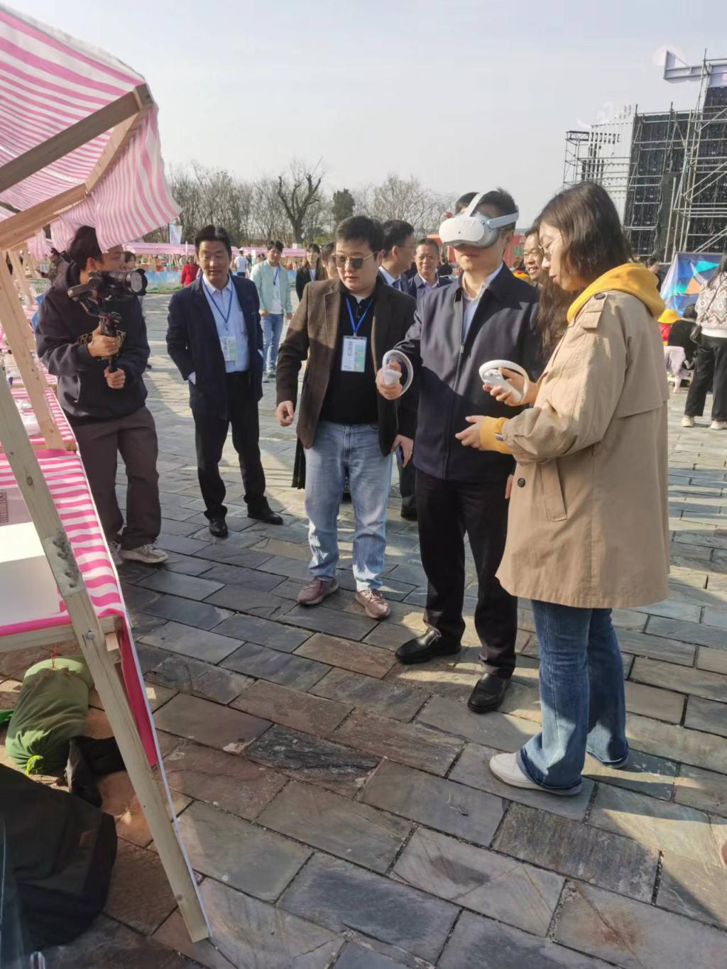 2024年3月22日,在湖北大学文化科技融合创新研究中心主任余日季教授指导下,数字媒体系副系主任孔德巍老师带领研究生团队参加了由屈家岭国家考古遗址公园主办的“遇见谷文明·TAO醉屈家岭”文化节。余日季教授和孔德巍副教授带领研究生团队共同研发的“屈家岭文化VR交互数字体验馆”项目,利用VR前沿虚拟现实技术,重新诠释了屈家岭遗址的历史魅力,通过数字化手段展示了标志性文物,提供了沉浸式的文化探索体验。