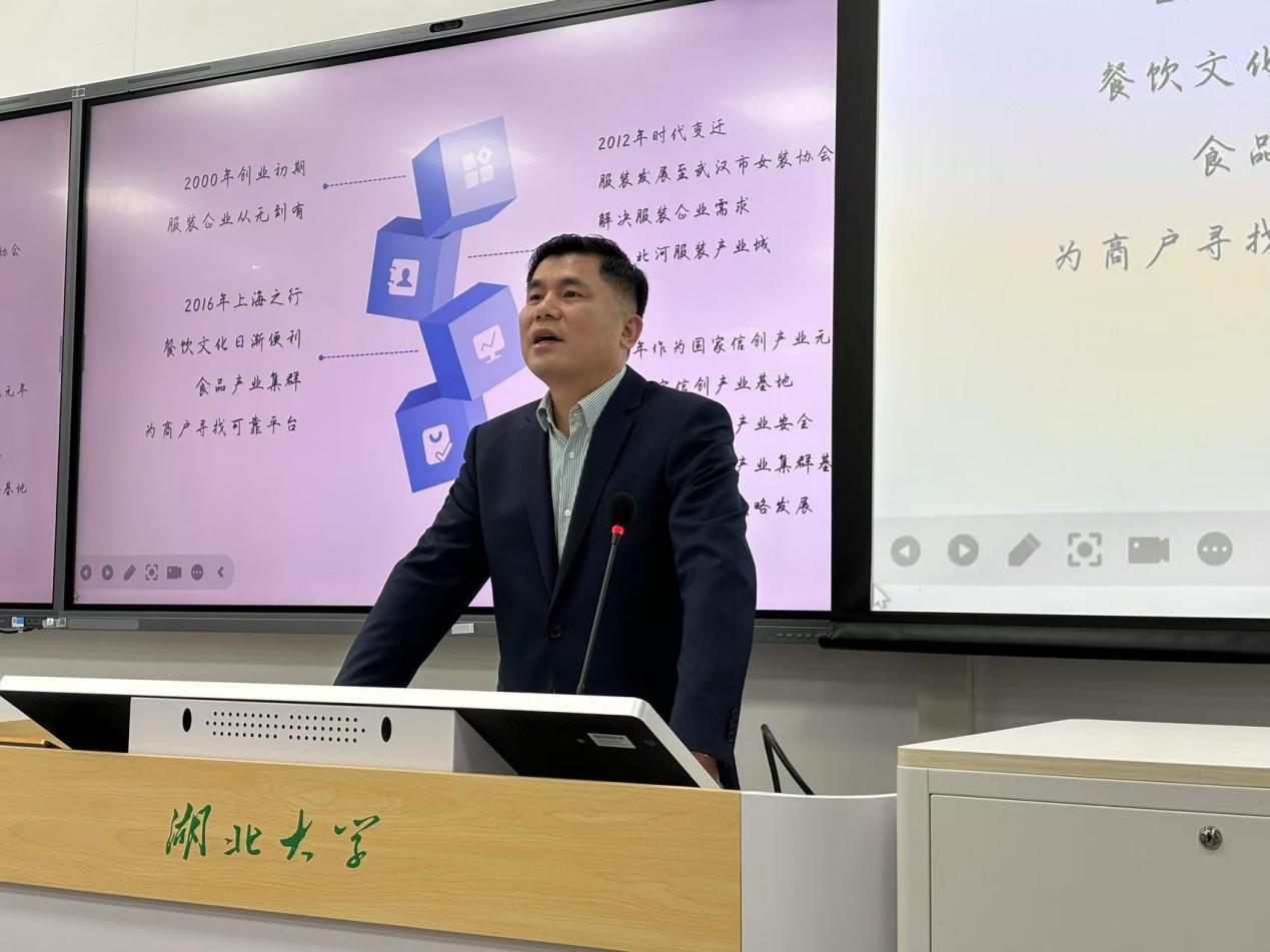 12月5日晚,学院邀请张克仪先生为大家授课,张克仪先生是武汉市杰出企业家、武汉市五一劳动奖章获得者、深圳德晟集团总经理、武汉容谊美食源商贸有限公司总经理、武汉青年创业导师,其授课主题为《大学生如何加强创新创业素质》,讲座由艺术与设计学院院长叶云教授主持。