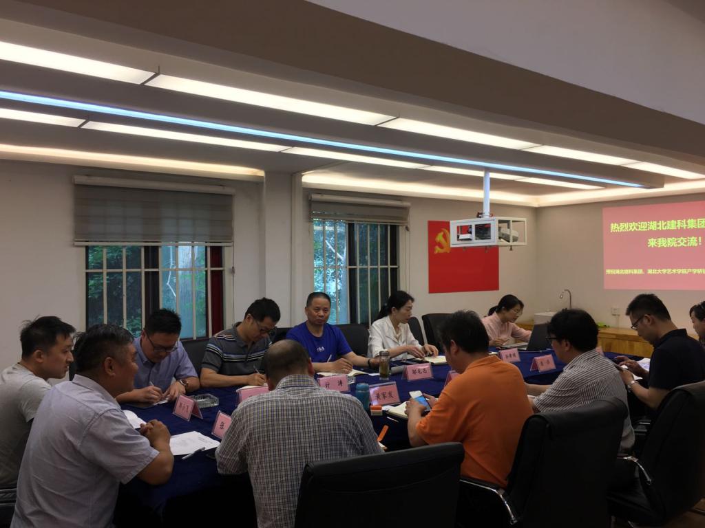 5月31日下午15:30分,湖北建科科技集团邬总一行来到湖北大学艺术学院,开展与湖北大学艺术学院建立“产学研”基地专题会议。共同探讨双方在技术创新研发、实训实践教学等方面的有效组合,为湖北建科与湖北大学艺术学院的未来发展搭建联合路径。