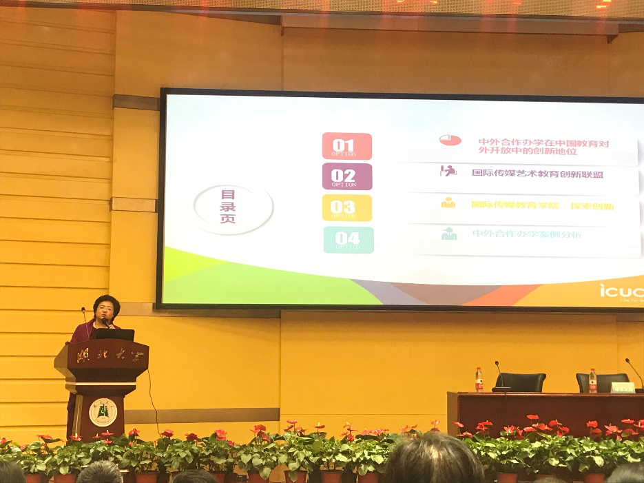 中国传媒大学国际传媒教育学院院长罗青教授正在进行演讲