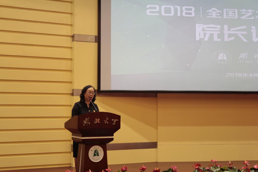 2018年4月27日上午,在湖北大学学术交流中心举办的全国艺术与设计学院院长论坛开幕式上,中国高等教育学会副秘书长王小梅致辞如下:
