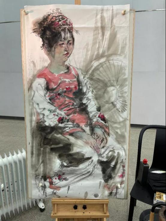 任教授还强调,中国水墨人物画要画其本质,画其结构,画其存在,不可依赖于光影,如果依靠光影,就很难在造型上找出依托的关系,如果以画“本质”、画“结构”、画“存在”为主,就能做到心中有数。同时强调绘画要不断地去尝试,实验如果一次成功,其实并没有太大的意义,而是在反复的过程中,帮助我们寻找到画面的最佳状态,上色和上墨只要不妨碍大体的画面,就要尽最大的可能让它发挥笔墨。