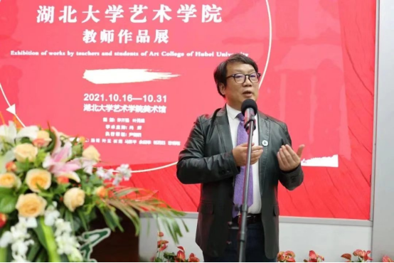 随后,湖北大学艺术学院原党委书记黄家发先生致辞。黄书记说,看到学院日日精进,做到了武汉城市形象口号所说“每天不一样”,心中万分欣喜!自己曾在学院工作了六年,与学院感情深厚,祝艺术学院越来越好,前途更加辉煌!