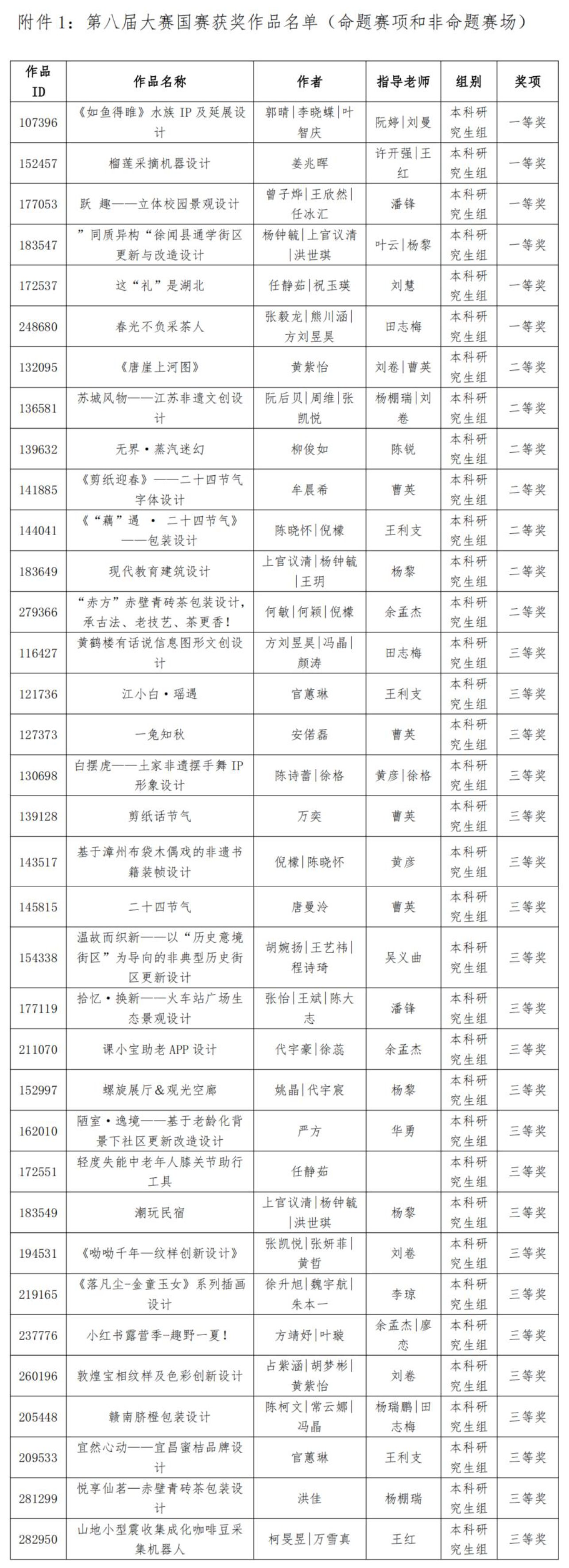 在刚刚结束的第八届米兰设计周-中国高校设计学科师生优秀作品展中,我院学生斩获奖项98项,其中国赛一等奖6项、二等奖7项、三等奖22项,非命题赛场湖北分赛区一等奖13项、二等奖23项、三等奖27项。具体获奖名单及获奖作品如下: