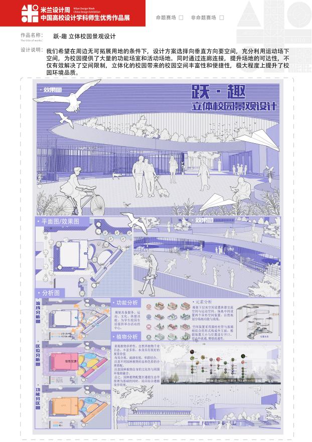 米兰设计周-中国高校设计学科师生优秀作品展 (Milan Design Week China Collegiate Design Competition & Exhibition) 由中国教育国际交流协会、中国高等教育学会于2016至2019年期间联合发起并主办,是A2类学科竞赛赛事。近年来,学院高度重视对师生实践创新能力的培养,大力支持师生参加各级各类学科竞赛活动,促进师生专业发展。深化“以赛促学、以赛促教、以赛促建”的教学理念,积极推进课程教学和教学方法改革,通过专业赛事不断强化教师专业水平和教学能力,提高学生专业素质和核心素养,争取在各类学科竞赛中取得更优成绩。